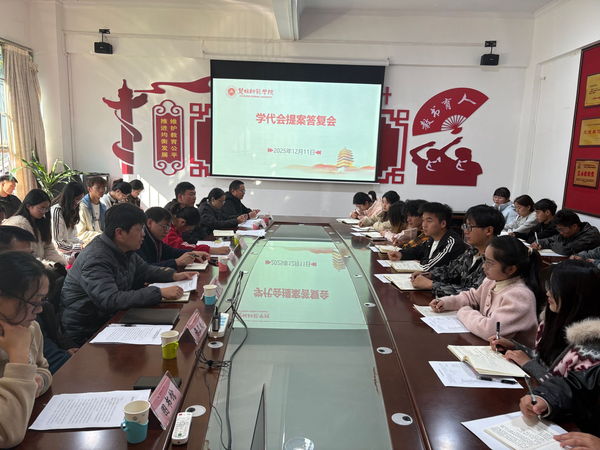 为进一步落实楚雄师范学院第十二次学生代表大会提案,拓宽学生参与学校民主管理的渠道,听取学生心声、回应学生关切,12月11日在笃学楼128会议室召开2025年第四...