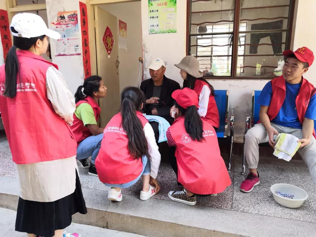 上午八点半,志愿者们从楚雄师范学院出发,经过了大约一个小时的路程,终于来到了楚雄市鹿城镇敬老院。一走进敬老院的大门,老人们已经在院子里面,欢迎志愿者的到来。在活动开展期间,志愿者和老人们聊家常,讲笑话,分享一些养生小知识,给老人带去欢乐;有的帮助老人整理内务,打扫卫生;还有的人帮老人捶背。志愿者们通过实际行动给老人们带去物质支持和精神关怀,用实际行动传递了爱的力量,老人们的脸上也洋溢起了笑容,纷纷为志愿者们竖起了大拇指。