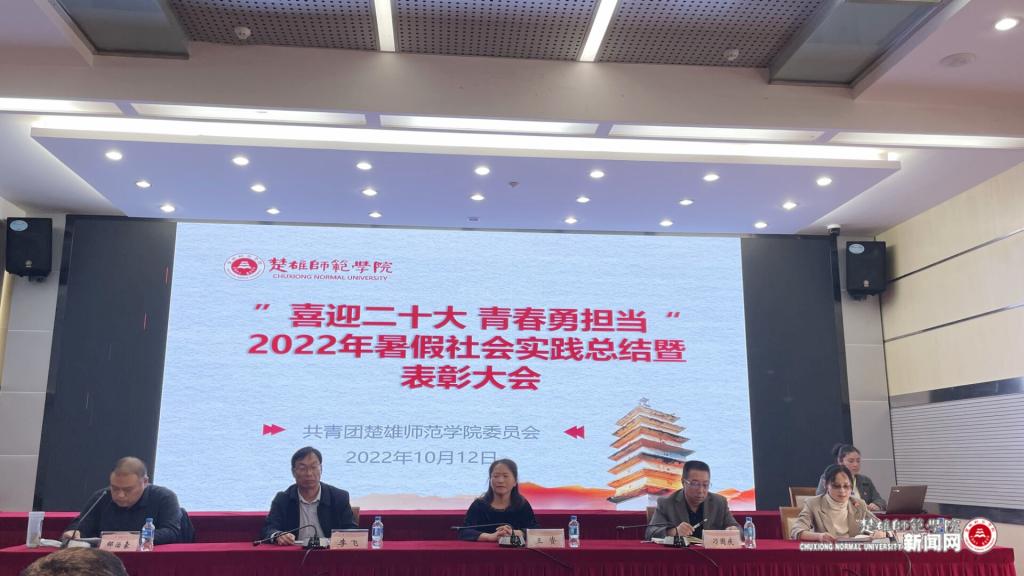 为深入学习宣传贯彻习近平新时代中国特色社会主义思想,深学践悟习近平总书记关于青年工作的重要论述、习近平总书记在庆祝中国共产主义青年团成立100周年大会上的重要讲话精神,引导和帮助广大楚师青年上好与现实相结合的“大思政课”,进一步坚定信念听党话、跟党走,迎接党的二十大胜利召开,10月12日下午,我校在信息楼第一报告厅举办“喜迎二十大 青春勇担当”2022年暑期社会实践总结暨表彰大会。党委副书记、校长王资,党委委员、宣传部部长刁国庆,学生处(学生工作部)部长李飞,各学院团委书记、校团委全体人员及暑期社会实践活动团队和个人代表参会。