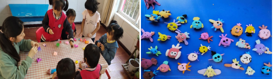 活动第一天(7月7号),团队组织了第一次活动,为了消除幼儿对团队成员的陌生感、提升小朋友对团队成员的信任也为了方便后续活动的开展,首先团队成员一一向小朋友们做自我介绍。接下来由两位成员带领小朋友做了手指操,活动幼儿身体的同时激起幼儿兴趣、增进我们与小朋友之间的情感。此后,团队组长带领小朋友参加了《你千万别上当》绘本阅读,幼儿在其中大胆发挥想象力,勇于表达自己的想法。后以绘本为依托开展创意泥工活动,大胆想象与创造。