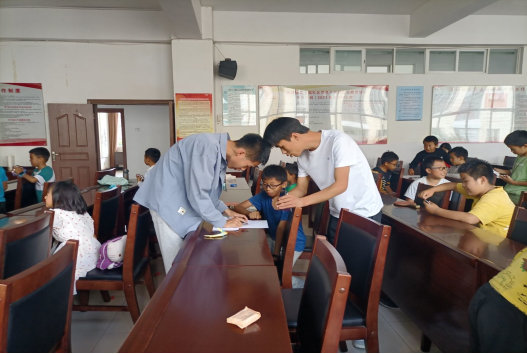 图9服务团记录小朋友的积分服务团成员李娜摄