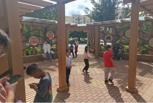 图6服务团带领小朋友开展“寻宝”小游戏 服务团成员 赵思龙 摄