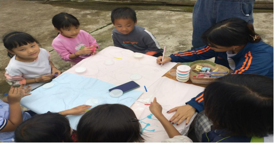 图为实践团成员教留守的孩子们做手工、折纸和画画,培养孩子们的兴趣爱好。中国青年网通讯员郑玉摄