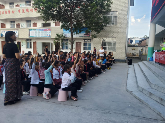 活动伊始,该校教务处介绍了本次推普脱贫“乡村路上的读书声”活动的背景和主要内容,向中心小学的同学们讲解了我们活动的意义,并寄语大家在今后的生活中学好普通话,讲好普通话。团队成员向参与学生讲解普通话学习的方法和易错点,并现场指导同学们进行词语和篇目的朗读练习。小朋友们在我们的带领下跟读普通话易错词语,了解到普通话学习中的难点和易错点;通过自主朗读练习和老师的现场指导,能够比较流利地使用标准普通话朗读汉语篇目。现场互动氛围热烈,孩子们积极配合,多次与团队员们互动,热情高涨。