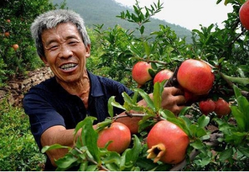 图为农户得知水果销量很好后,露出笑脸。