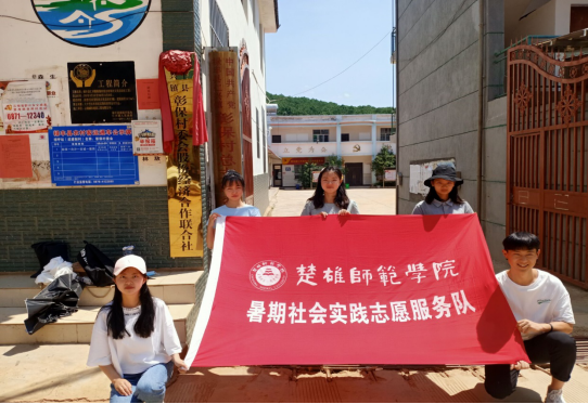 图为小组成员在此次去实践的村居委会门口合影 通讯员周琳娜 摄