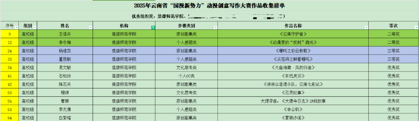 笔绘云岭·漫创青春—— 楚师学子在云南省“国漫新势力”“动漫创意”写作大赛中斩获佳绩