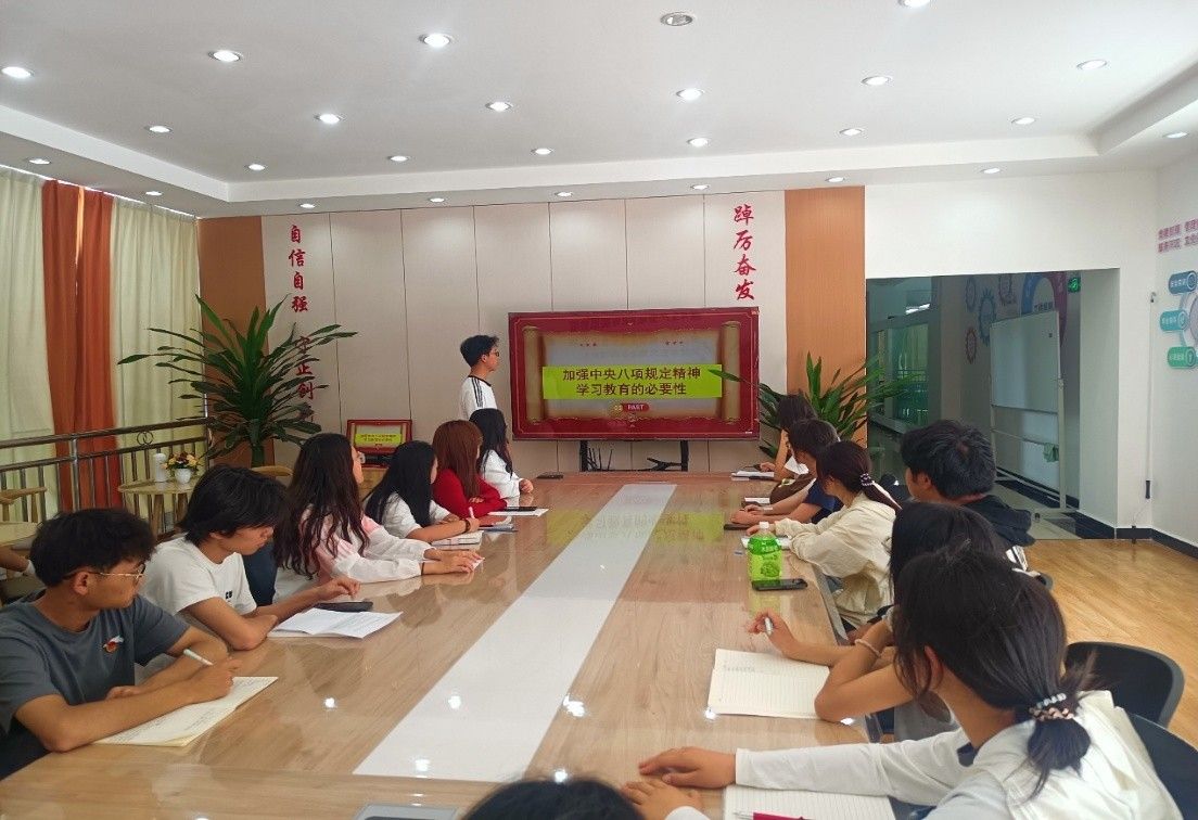 会议伊始,由马克思主义学院宣讲团成员陈若曦带领学习《中央八项规定》精神,从背景、内容到实践要求进行系统解读,强化纪律意识与作风建设理念。引导青年深刻认识作风建设的重要性与长期性。随后的“作风建设大家谈”环节中,青年代表结合生活学习实际踊跃发言,围绕学习生活中的经验、反思存在问题,并提出改进建议,一致表示要在工作中保持严谨态度,以热情服务同学的作风将要求落实到每个细节。最后,全体人员通过视频学习国家安全相关知识,从政治、经济、社会等多维度认识国家安全的重要性,进一步增强维护国家安全的自觉性。