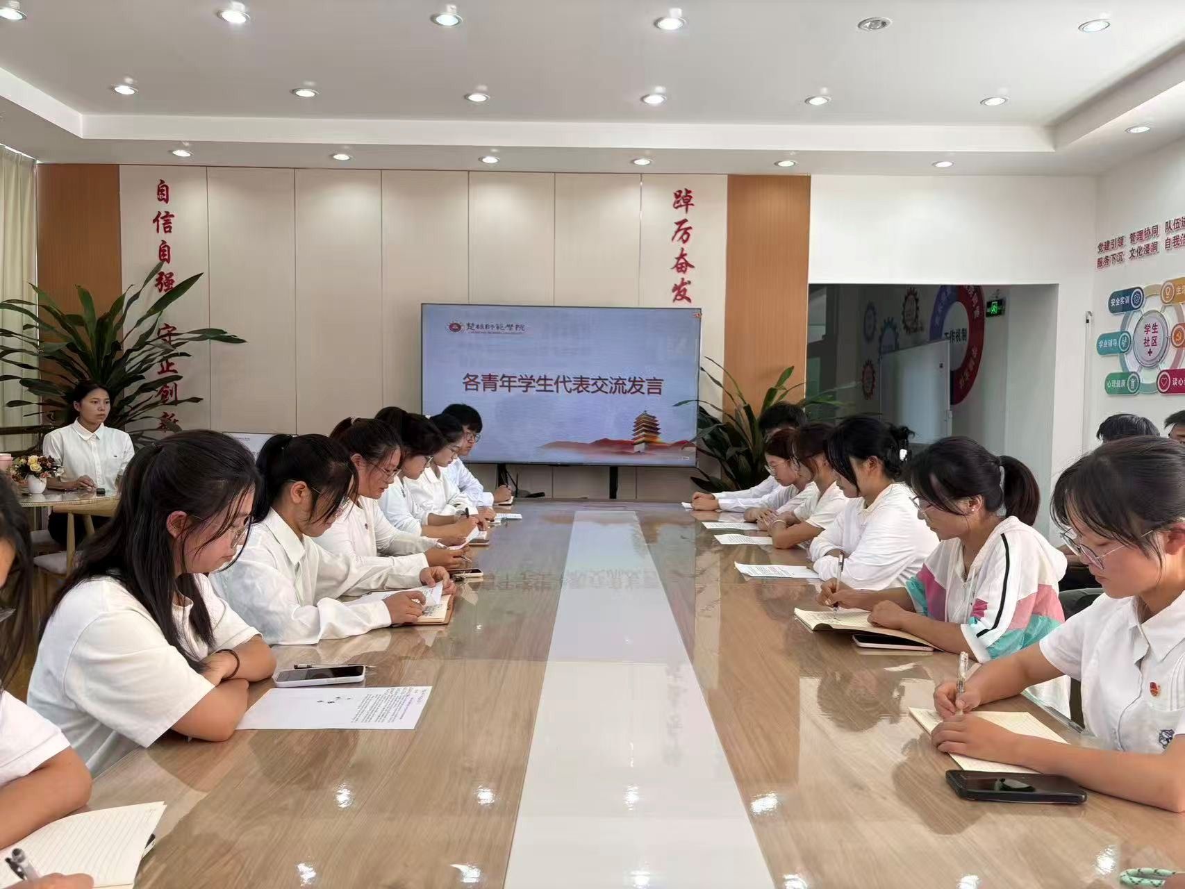 会议伊始,全体与会人员集中观看了全国青联十四届全委会和全国学联二十八大相关视频,重温大会盛况,感受新时代中国青年的昂扬风貌与使命担当。在领学环节中,领学人系统解读了习近平总书记致全国青联十四届全委会和全国学联二十八大的贺信的核心要义与精神内涵精神,帮助同学们深刻体会党中央对青年一代的亲切关怀与殷切期望。在交流发言阶段,各部门学生代表纷纷表示,习近平总书记的贺信令人倍感振奋、深受鼓舞,要牢记嘱托,立大志、明大德、成大才、担大任,将爱国情、强国志、报国行自觉融入日常,以实际行动践行“请党放心,强国有我”的青春誓言。