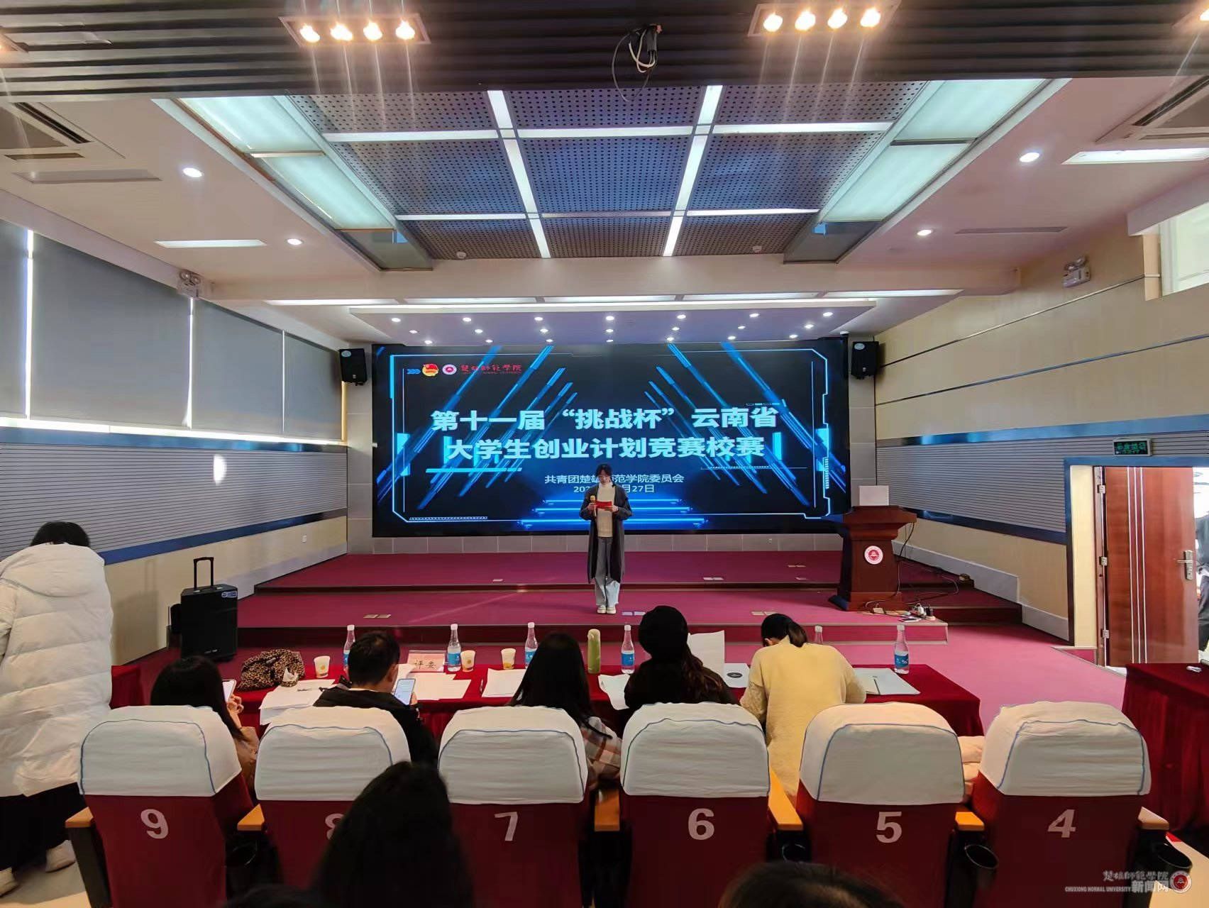 12月27日下午,我校举办第十一届“挑战杯”大学生创业计划竞赛校赛。赛事分三组,分别在信息中心第一报告厅、第二报告厅和博远楼102阶梯教室进行。教育部就创协会创新创业导师、职业生涯规划导师何睿,星创(楚雄)科技服务有限公司总经理宋晓燕、楚雄州海子科技电脑有限公司总经理张鼎,学校教务处、科技处及各二级学院团委书记作为评委参加活动。