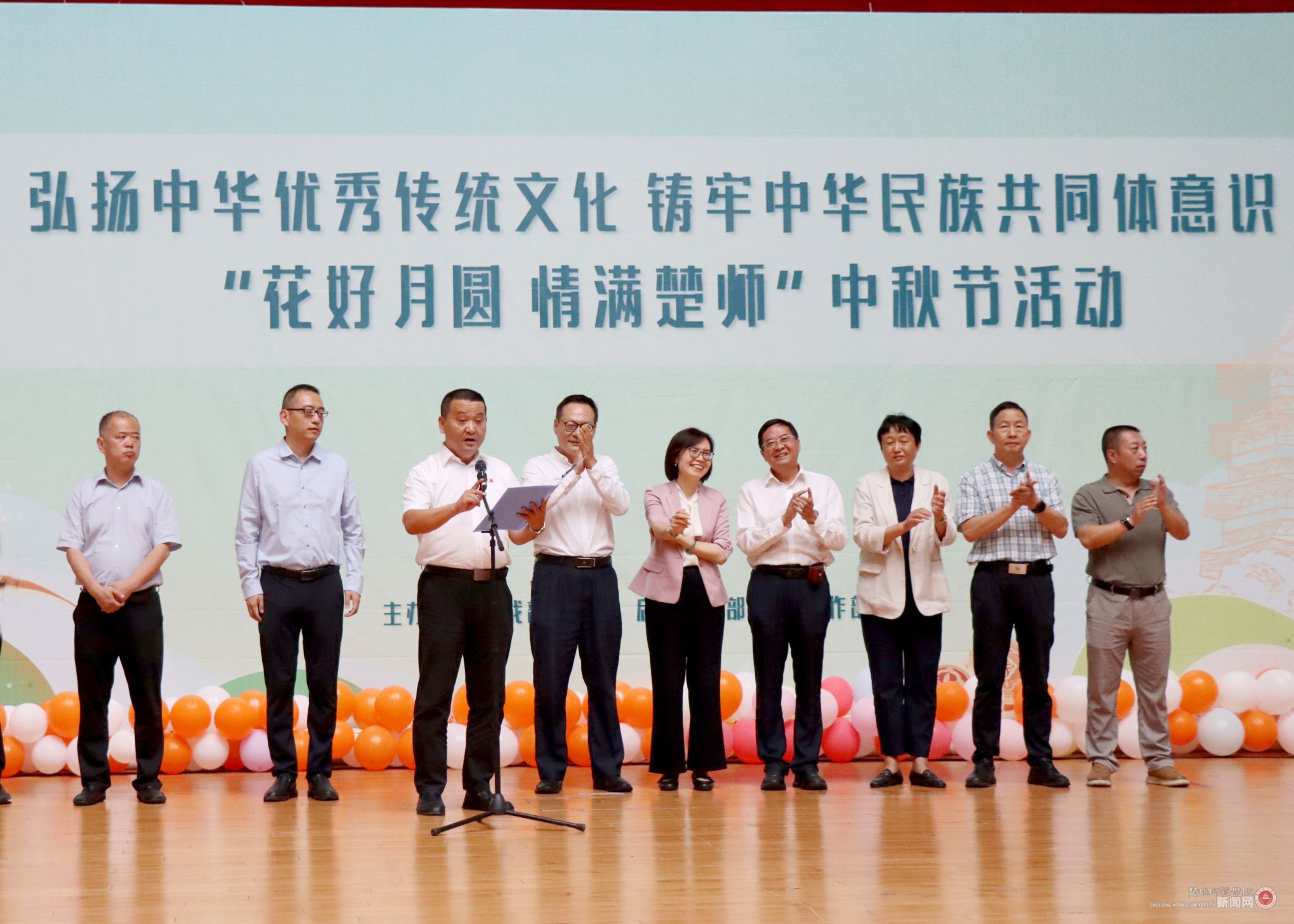 情满楚师”中秋节主题活动。党委书记王建雄,校长杨桂红,党委副书记杨宏仁、施红星,副校长江枫、彭燕梅、徐伟,保留副厅长级待遇干部李正武,党委委员、宣传部、统战部部长刁国庆到场与师生一起参加活动。