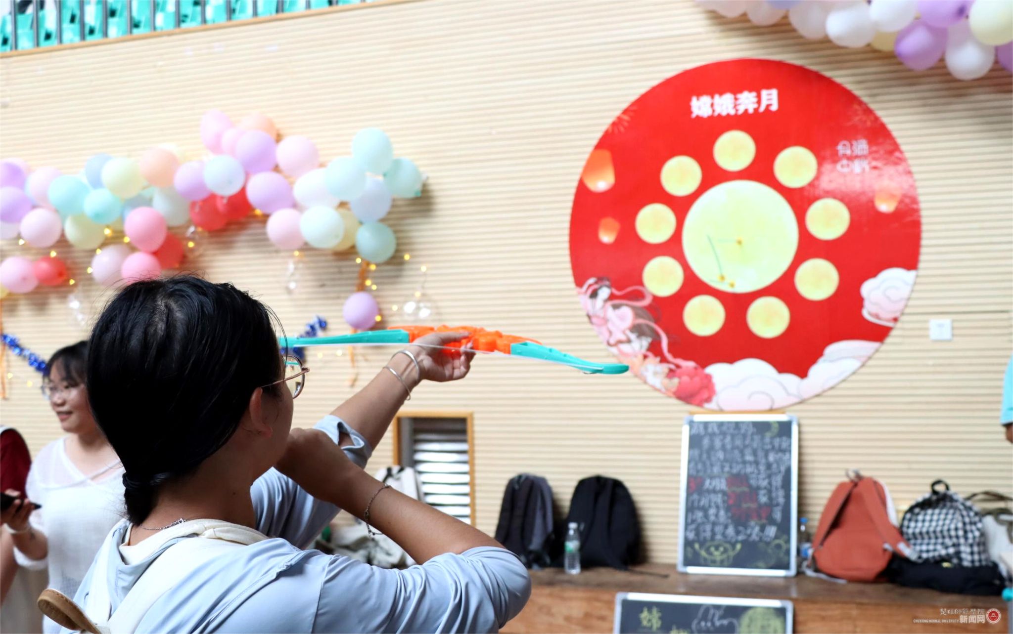 活动现场设计了玉兔套圈、盲盒夹月、中秋拼图比赛、拼贴诗、嫦娥奔月、花样中秋、猜灯谜等丰富多彩的互动环节,吸引了众多师生积极参与。大家或屏息凝神,或欢声笑语,共同体验着中秋节的乐趣。学校为参加活动的师生准备了月饼和精美的小礼品,师生共同品鉴月饼,分享温馨时刻,体悟团圆与家国情怀。