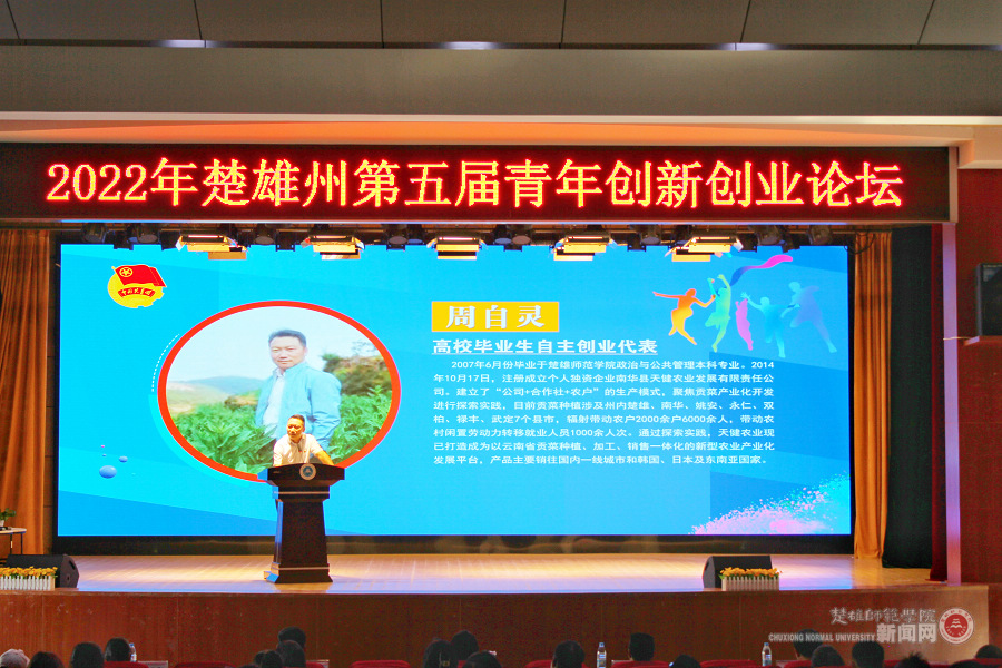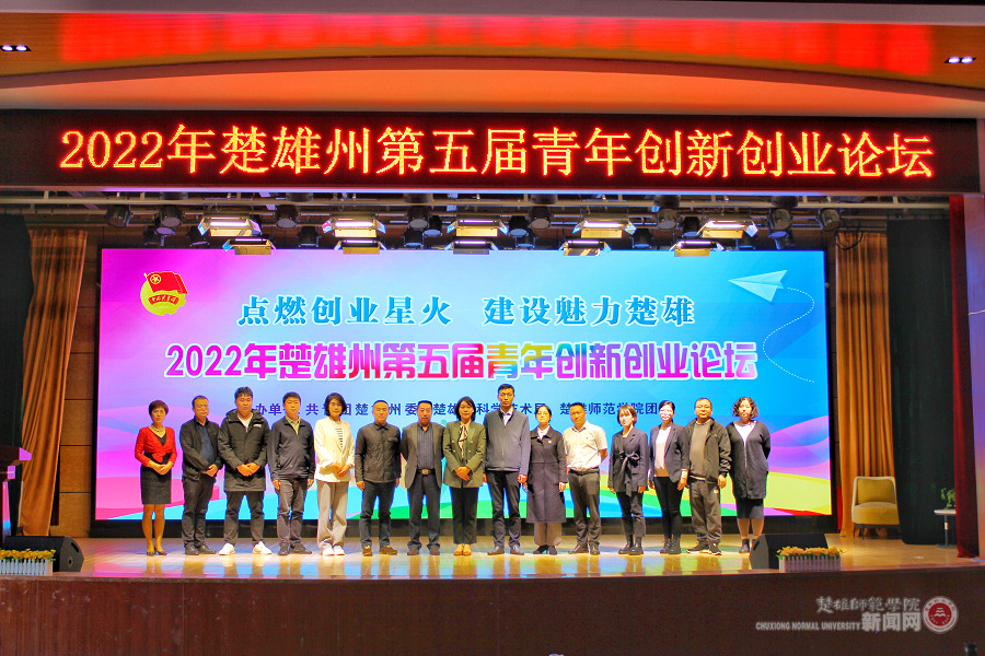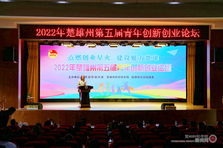 为深入学习贯彻党的二十大精神,激发学生创新创业激情,增强创新创业意识,提高创新创业能力,拓宽创新创业思路,了解创新创业政策,更好地为大学生创新创业提供全方位指导。11月7日下午,由共青团楚雄州委、楚雄州科技局、楚雄师范学院团委联合主办的“2022年楚雄州第五届青年创新创业论坛”在我校上礼堂举行。团州委书记左雪妹,州科技局副局长郭绍云,楚雄师范学院党委委员、宣传部部长刁国庆等领导出席论坛,来自各个领域的创新创业青年代表、在校学生等200余人参加论坛。