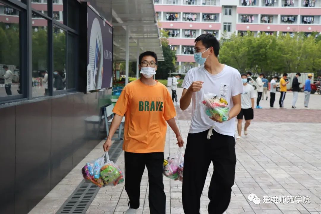 为扎实做好花果山校区疫情防控分类管理工作,落实落细各项疫情防控措施,全方位为学生生命安全和身心健康保障护航。10月9日下午,一份承载着学校深情关怀的爱心“大礼包”送达花果山校区的各位同学们手中。学校疫情防控工作领导小组到溢香餐厅门口指导督查并参与"大礼包”发放。