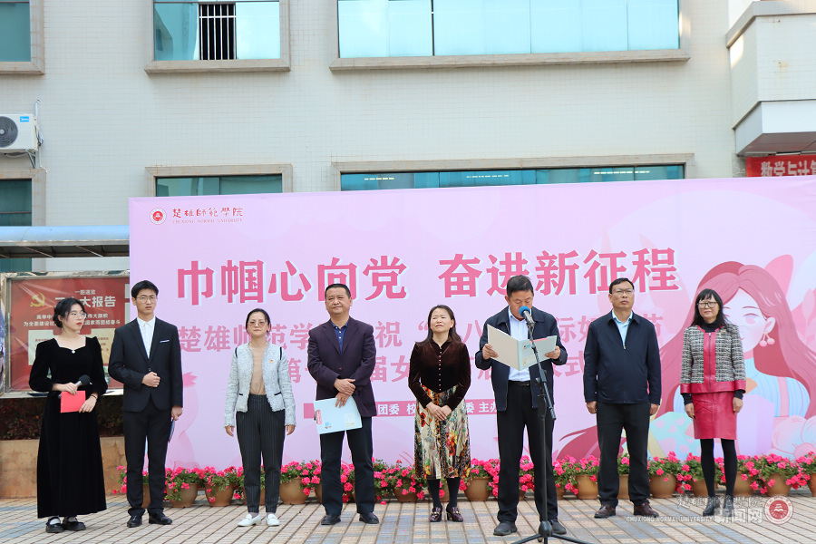 2023年3月7日,由校妇联、校团委、校工会女工委员会主办的“巾帼心向党 奋进新征程”纪念“三八”国际劳动妇女节暨第十七届女生节启动仪式在花果山校区凯旋门前举行,学校党委副书记、校长王资,副书记李正武、施红星,学生处、校团委、校妇联以及相关职能部门负责人,各学院师生代表参加启动仪式。