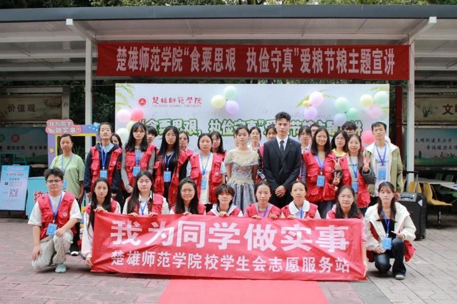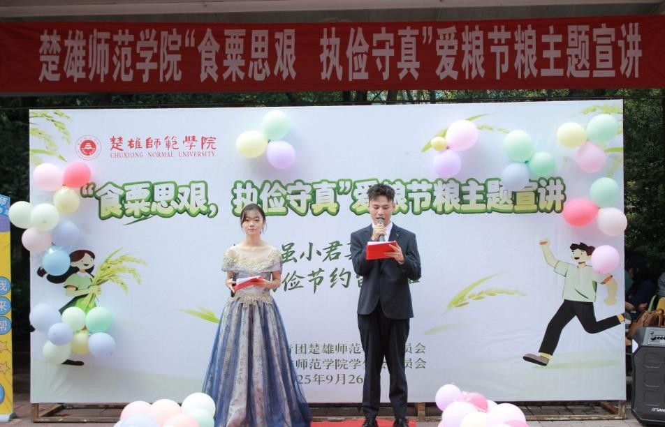 为深入贯彻党的二十届三中全会精神,将厉行节约、反对浪费的责任落到实处,引导广大同学树立正确的粮食安全观,养成爱惜粮食、节约粮食的良好习惯。2025年9月27日12:00~13:00,由共青团楚雄师范学院委员会主办、楚雄师范学院学生会委员会承办的“食粟思艰,执俭守真”宣讲活动在花果山校区溢香餐厅门口顺利举行。
