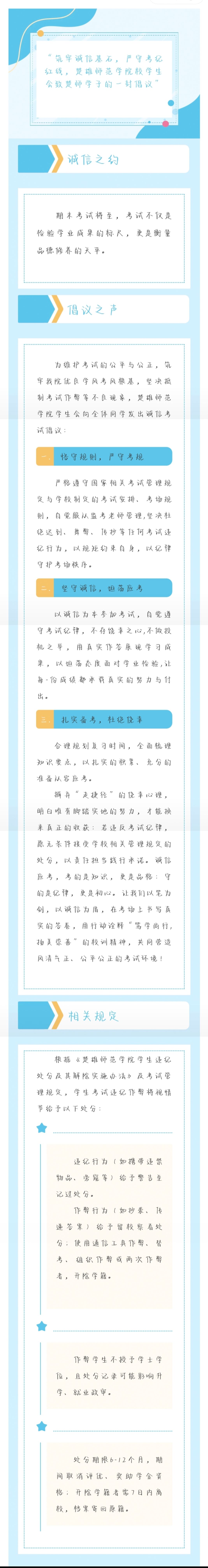 筑牢诚信基石 严守考纪红线——期末诚信考试倡议书